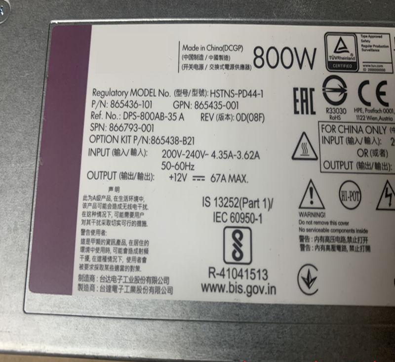 hpe g10 server power 800w 865438-B21ชื่อแบรนด์