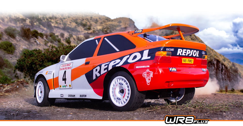 รถแข่ง HPI WR8 Flux ขนาด 1/8 ขับเคลื่อน 4 ล้อ แบบไร้แปรงถ่าน พร้อมใช้งาน (RTR) ได้รับลิขสิทธิ์อย่างเป็นทางการ รุ่น Escort Mk2 มอเตอร์ 3800KV ESC 120A ความเร็วสูงสุด 75 กม./ชม.
