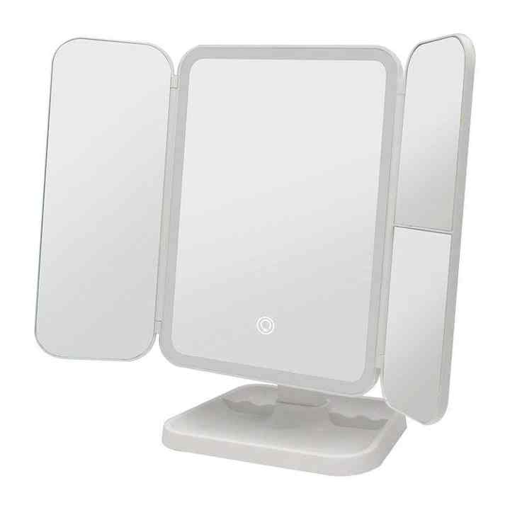 กระจกแต่งหน้าแบบพับได้ 3 ตอน พร้อมไฟ LED ควบคุมด้วยระบบสัมผัส 3 สี ปรับมุมได้ ชาร์จผ่าน USB รุ่น HQ Mixed Proc Discount