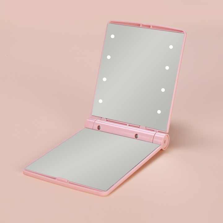HQ กระจกแต่งหน้า LED มือถือขนาดมินิสำหรับผู้หญิงเครื่องมือเครื่องสำอางเดินทางประจำวัน