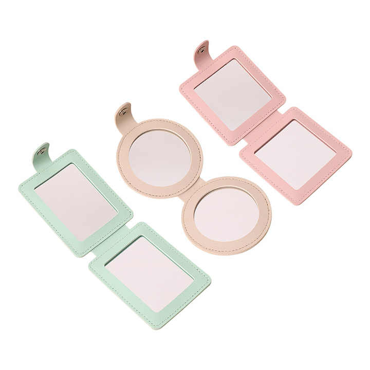 กระจกแต่งหน้าพกพาแบบพับได้ รุ่นมินิ วัสดุหนัง PU ขยาย 1 เท่า/2 เท่า ลดราคาพิเศษ