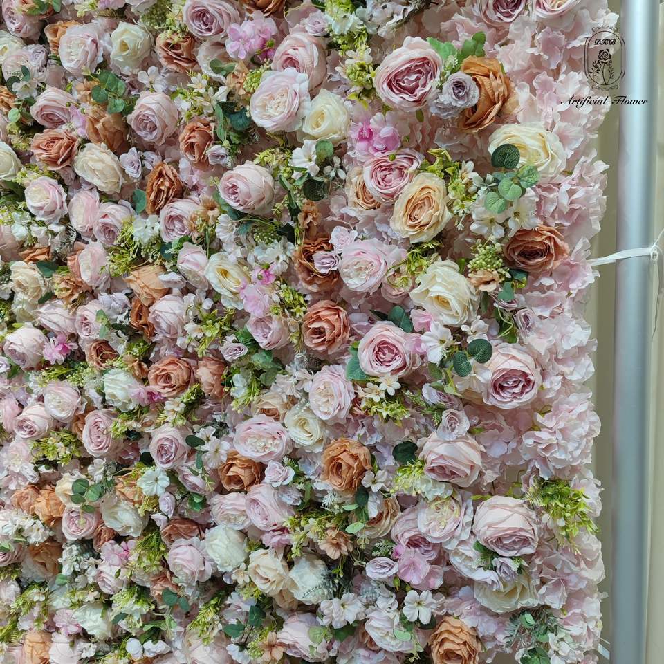 ผ้า3D แผงดอกไม้สีชมพู HQ054 3D ติดผนังฉากหลัง3D ดอกไม้ผ้าไหมดอกกุหลาบตกแต่งงานแต่งงานเทศกาลคริสต์มาสปีใหม่