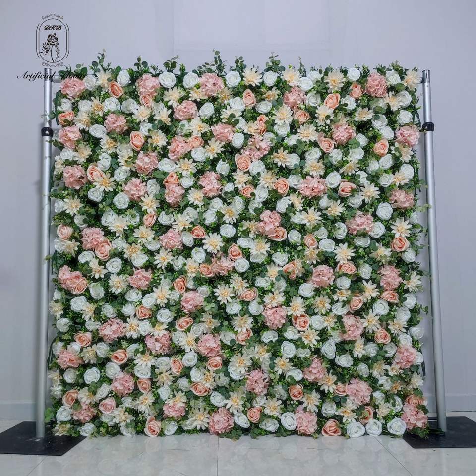 HQ061 Customized Backdrop Silk Artificial Wedding Decorative Flower Wall Blue and White Rose Rolled up Flower Wall Backdrop