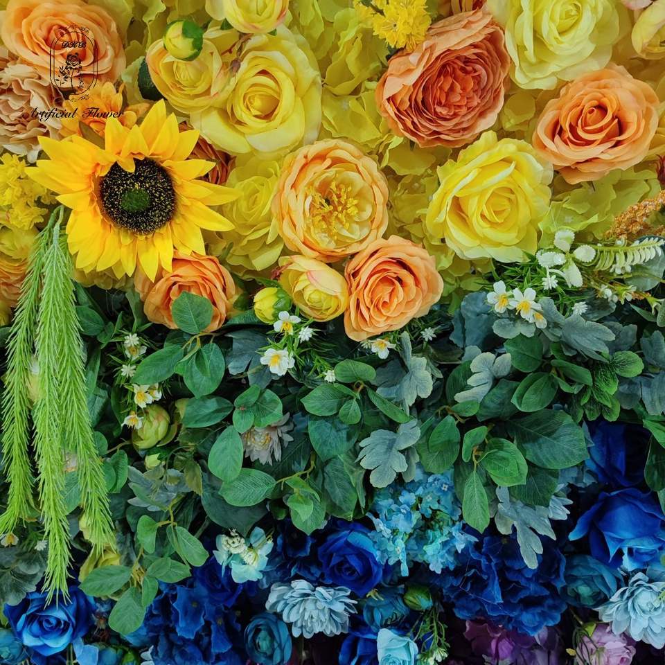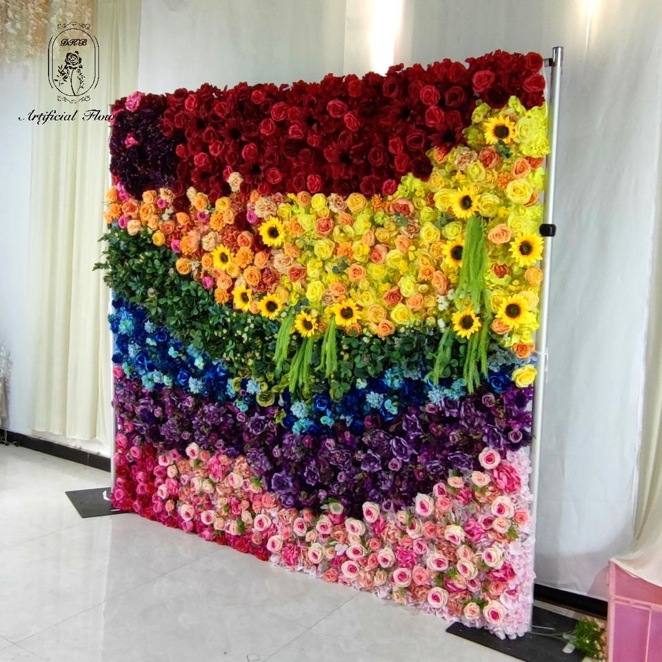 HQ068 สายรุ้งประดิษฐ์ดอกไม้ผ้าไหม Rose ดอกไม้ผ้าฉากหลังดอกไม้ตกแต่งสําหรับห้องนอนงานแต่งงาน