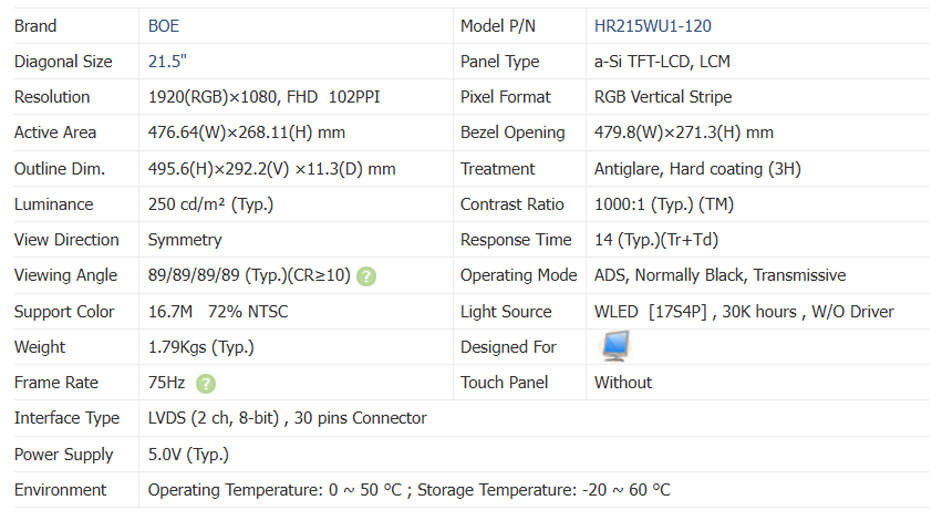 อินเทอร์เฟซแผงควบคุม:LVDS (2 ช่อง, 8 บิต), ขั้วต่อ 30 พิน