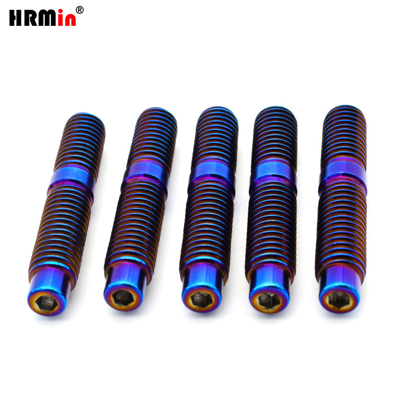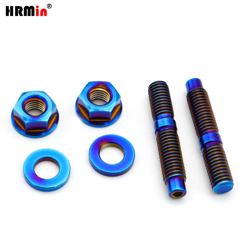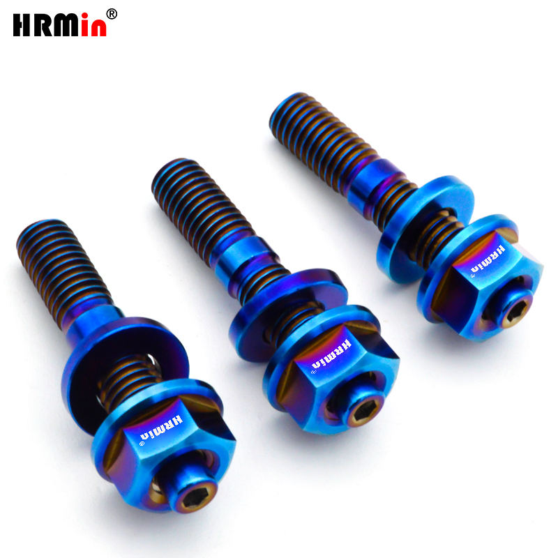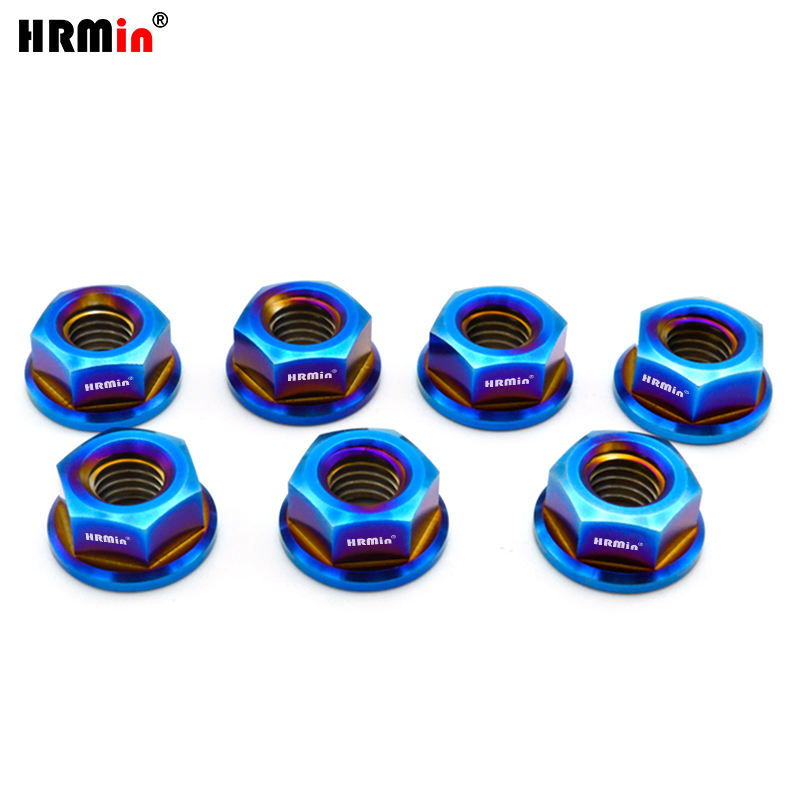 Hrmin ท่อร่วมไอเสียไทเทเนียมสีฟ้าชุดน็อตหน้าแปลนหกเหลี่ยมชุด M8 M10สำหรับรถยนต์และรถจักรยานยนต์สภาพ Gr.5ใหม่