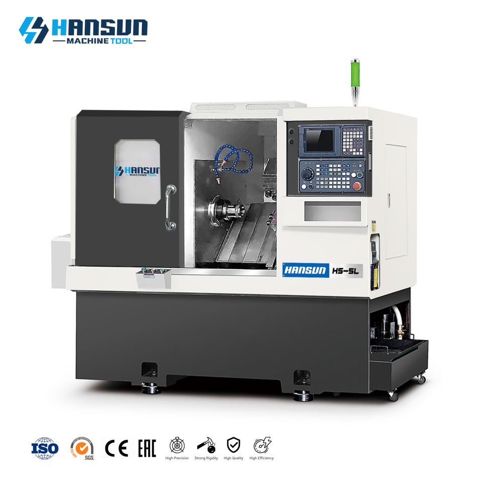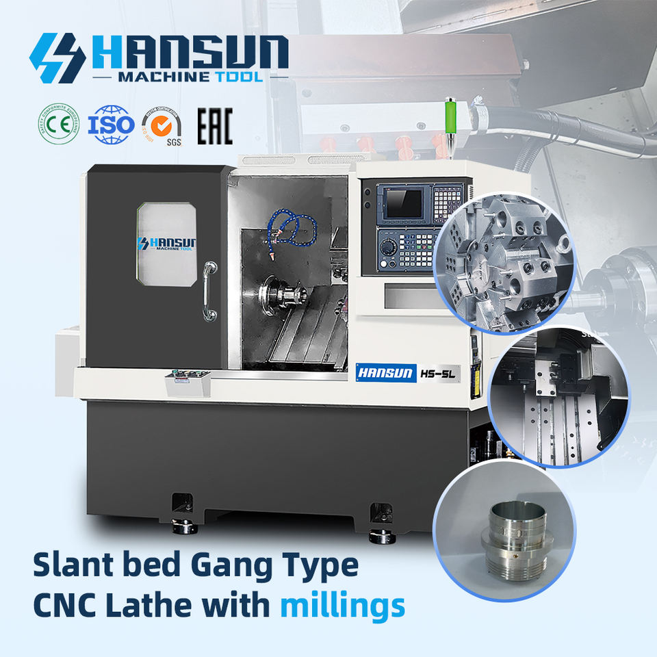 เครื่องกลึงซีเอ็นซีแบบแก๊งค์เตียงเอียงพร้อมเครื่องโม่ HS-5L ความแม่นยำสูง