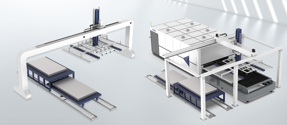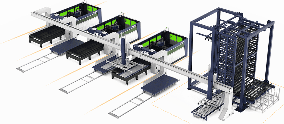 โซลูชันการตัดด้วยเลเซอร์ Hsg Lmk มีความยืดหยุ่นในการผลิตพร้อมระบบโหลดอัตโนมัติและขนถ่าย เครื่องตัดเลเซอร์อัตโนมัติพร้อมการป้อนอัตโนมัติจากคลังวัสดุแผ่น