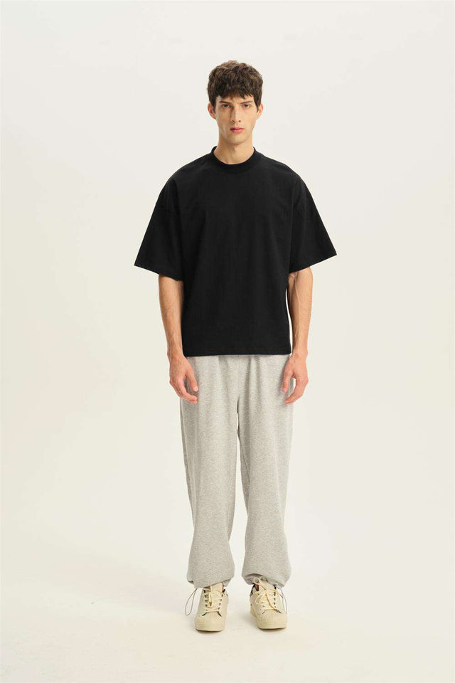 เสื้อยืดโอเวอร์ไซส์สีดำล้วนทรงบ็อกซี่ HSI ขายส่งเสื้อยืดลำลองสำหรับผู้ชาย ผลิตในปากีสถาน แห้งเร็ว ผ้าฝ้าย 100%