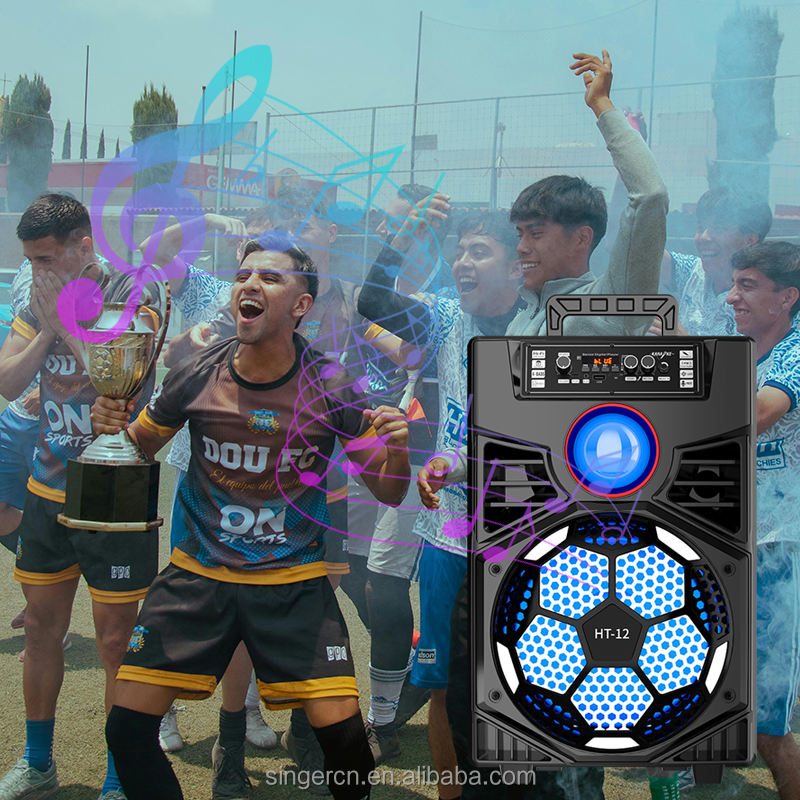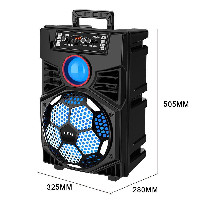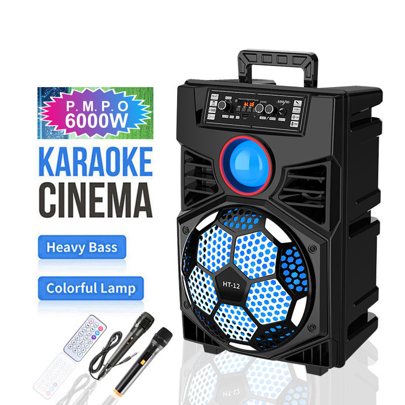 ลำโพงคาราโอเกะแบบล้อลาก HT-12 ขนาด 12 นิ้ว ขายดี พร้อมไมโครโฟนในตัว ไร้สาย รองรับ USB ไฟ RGB LED แบตเตอรี่ 2400mAh พกพาสะดวก ใช้งานกลางแจ้งได้