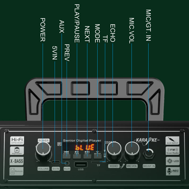 คุณสมบัติ:ไฟ LED สีสันสดใส, วิทยุ, คาราโอเกะ