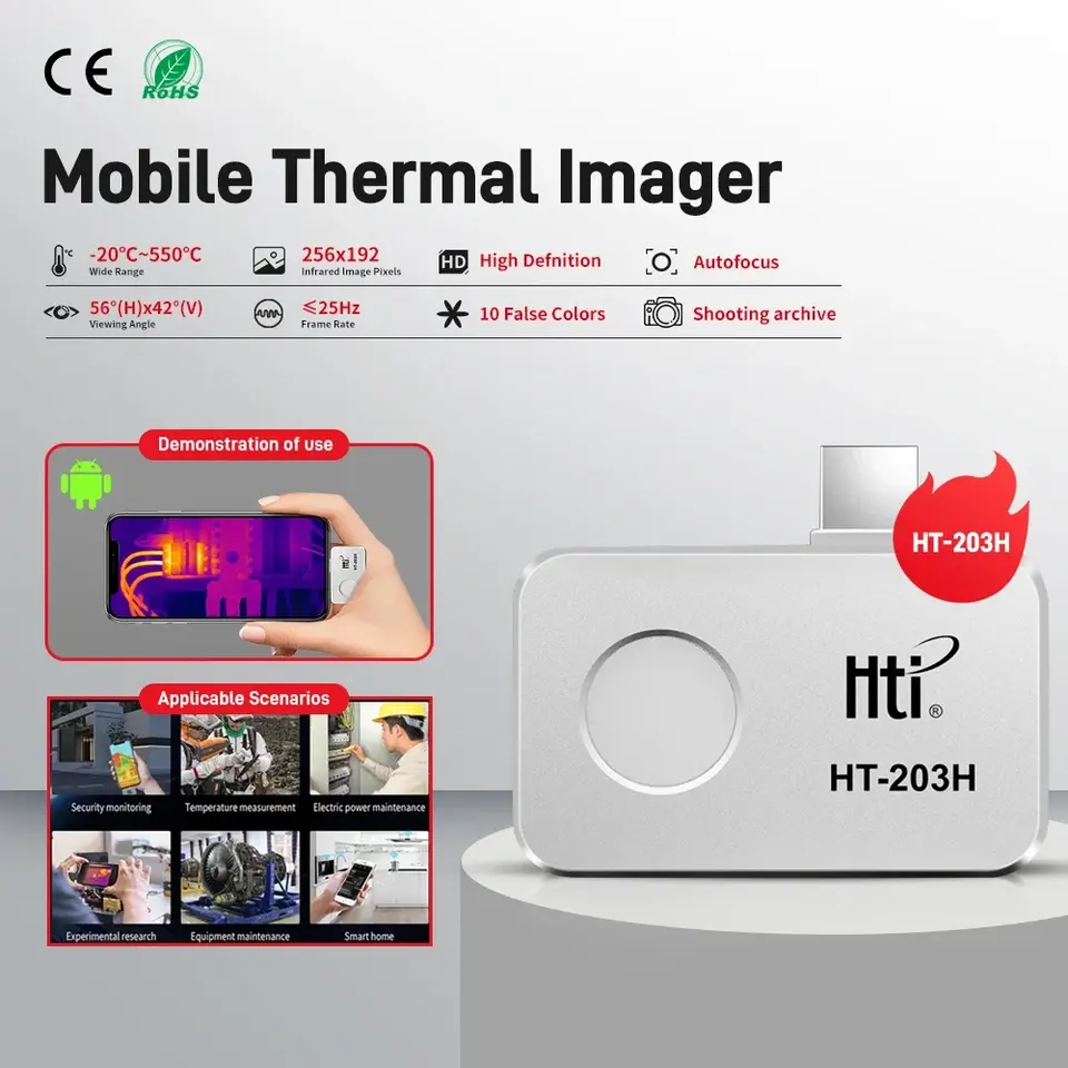กล้องถ่ายภาพความร้อน HT-203H สำหรับโทรศัพท์มือถือ ซ่อมอุปกรณ์อิเล็กทรอนิกส์ขนาดเล็ก กล้องถ่ายภาพความร้อนสำหรับโทรศัพท์มือถือระบบแอนดรอยด์