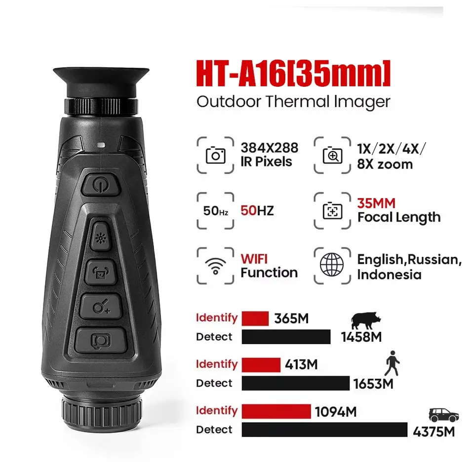 กล้องถ่ายภาพความร้อน HT-A16 35 มม. ความละเอียด 384x288 อินฟราเรดแบบตาเดียว ระยะมองเห็นกลางคืน 300 ม.