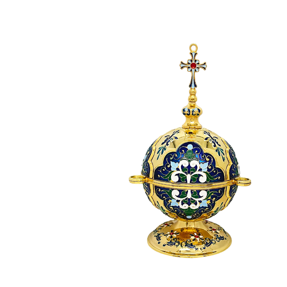 เตาเผากำยานโลหะผสมขัดเงาอย่างดี ชุบทองใหม่ แบบออร์โธดอกซ์ สองสี ของขวัญทางศาสนาสำหรับโบสถ์