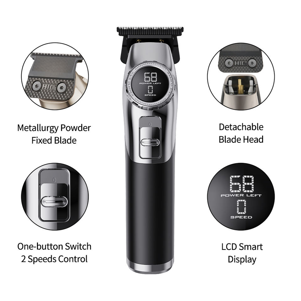 เครื่องตัดผม HTC AT-599 รุ่น Professional Barber ใบมีดผลิตด้วยเทคโนโลยี Powder Metallurgy พร้อมหน้าจอแสดงผลดีไซน์นาฬิกา