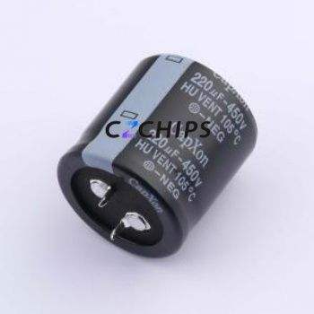ตัวเก็บประจุแบบอิเล็กโทรไลต์อะลูมิเนียมแบบสแนปอิน HU221M450O300A00A ชนิดขาเสียบ (THT), ขนาด D30xL30 มม.