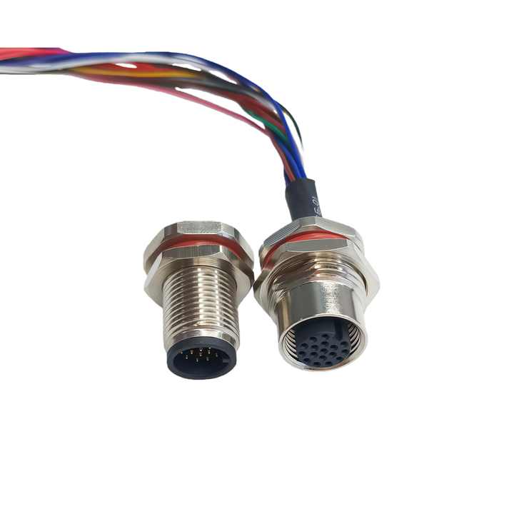 ขั้วต่อ HUA M12 IP68 กันน้ำ ทองแดง 4A 17 พิน 17 แกน แบบตัวผู้ตัวเมีย พร้อมหน้าแปลน ขั้วต่อสแตนเลส สำหรับใช้งานในอุตสาหกรรม