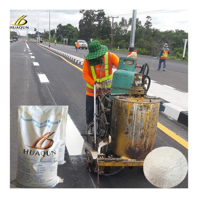 สีทาเส้นจราจรสะท้อนแสงสูง HUA QUN คุณภาพดีเยี่ยม ทนทานต่อการสึกหรอ สีเทอร์โมพลาสติกสำหรับทำเครื่องหมายถนน