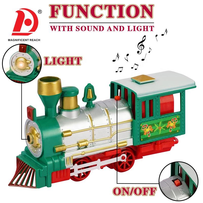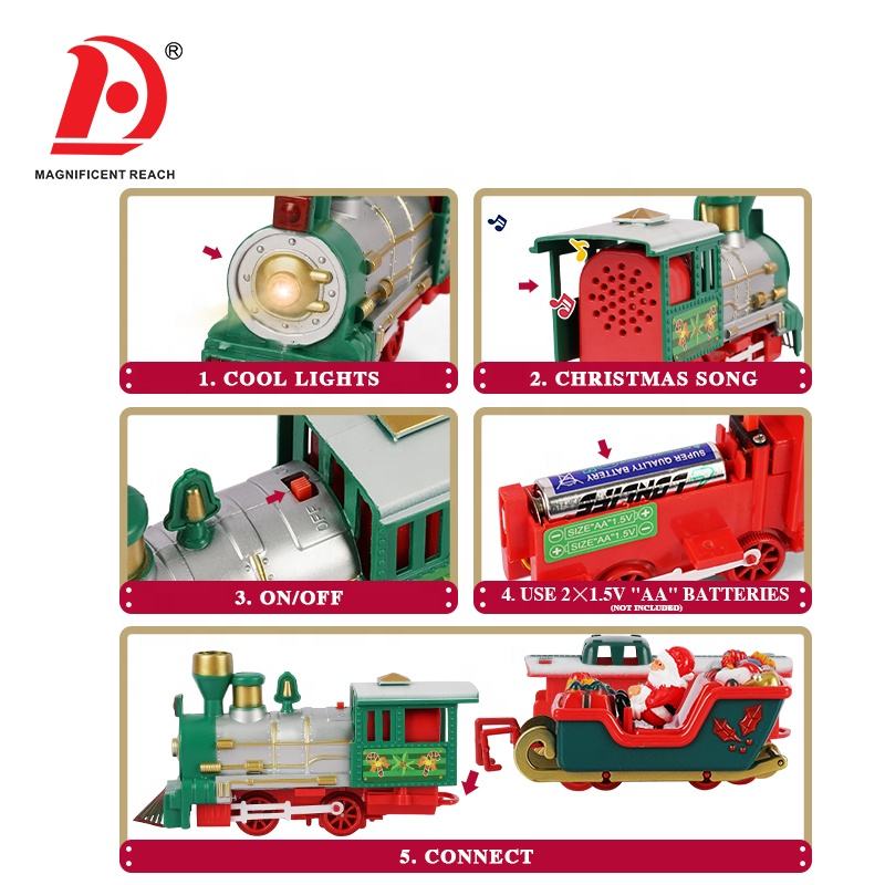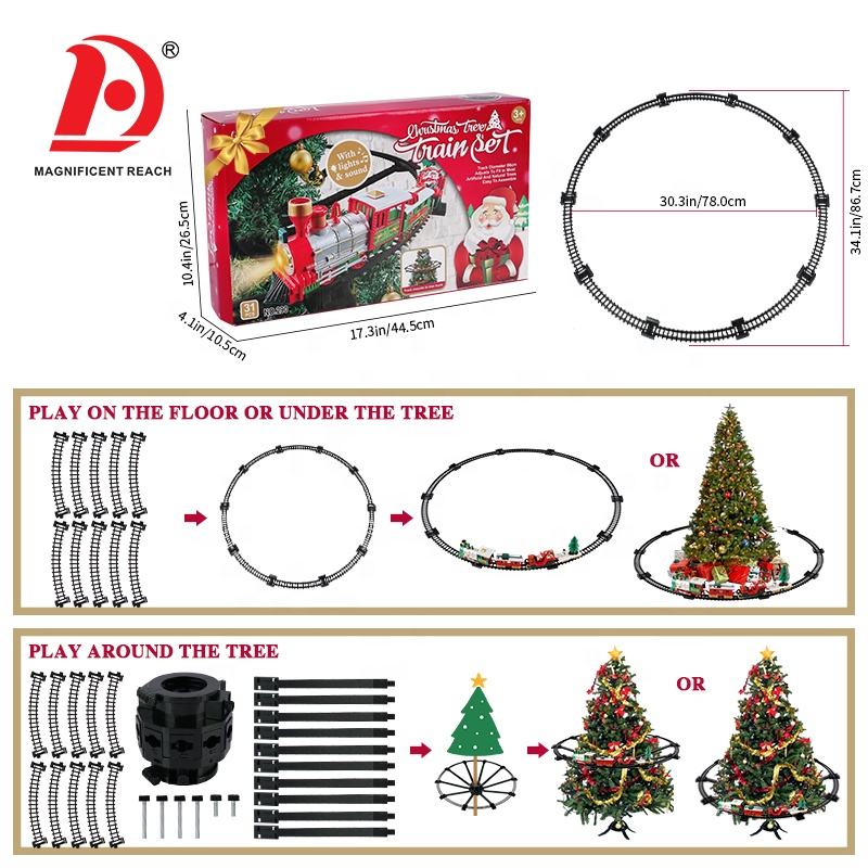 HUADA ชุดรถไฟพลาสติกคลาสสิก,ของเล่นรถไฟตกแต่งคริสต์มาสดนตรีไฟฟ้าในต้นไม้