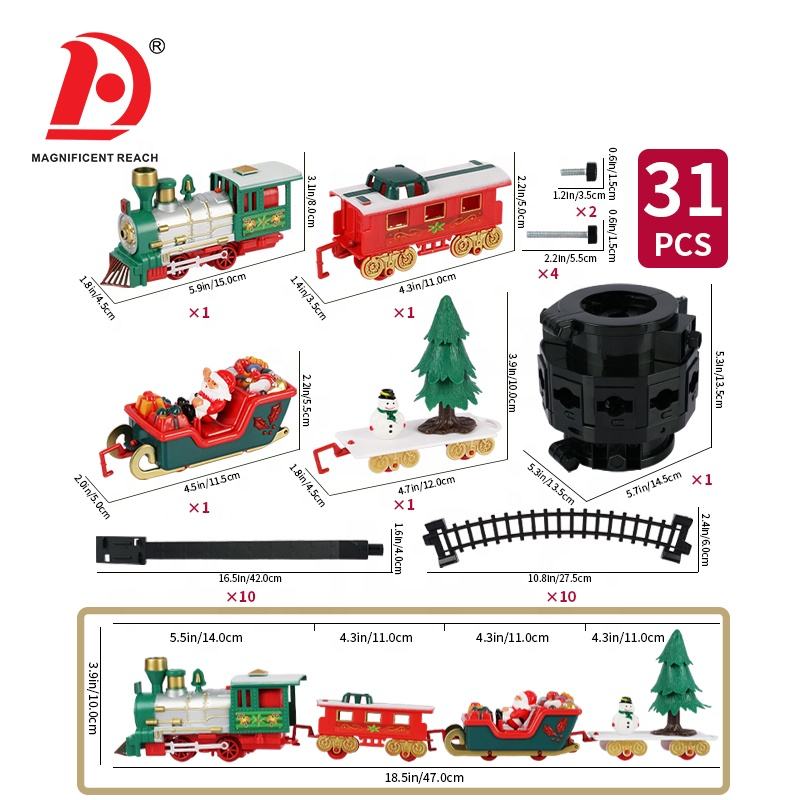 Huada 2025ชุดรางรถไฟพลาสติกคลาสสิกชุดดนตรีไฟฟ้าตกแต่งคริสต์มาสรถไฟของเล่นในต้นไม้