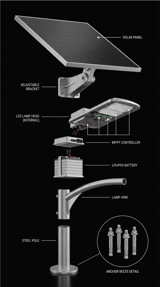 ไฟถนนโซลาร์เซลล์แบบแยกส่วน HUADENG ไฟ LED ติดผนังภายนอกอาคาร พร้อมแผงโซลาร์เซลล์แยกต่างหาก กันน้ำ