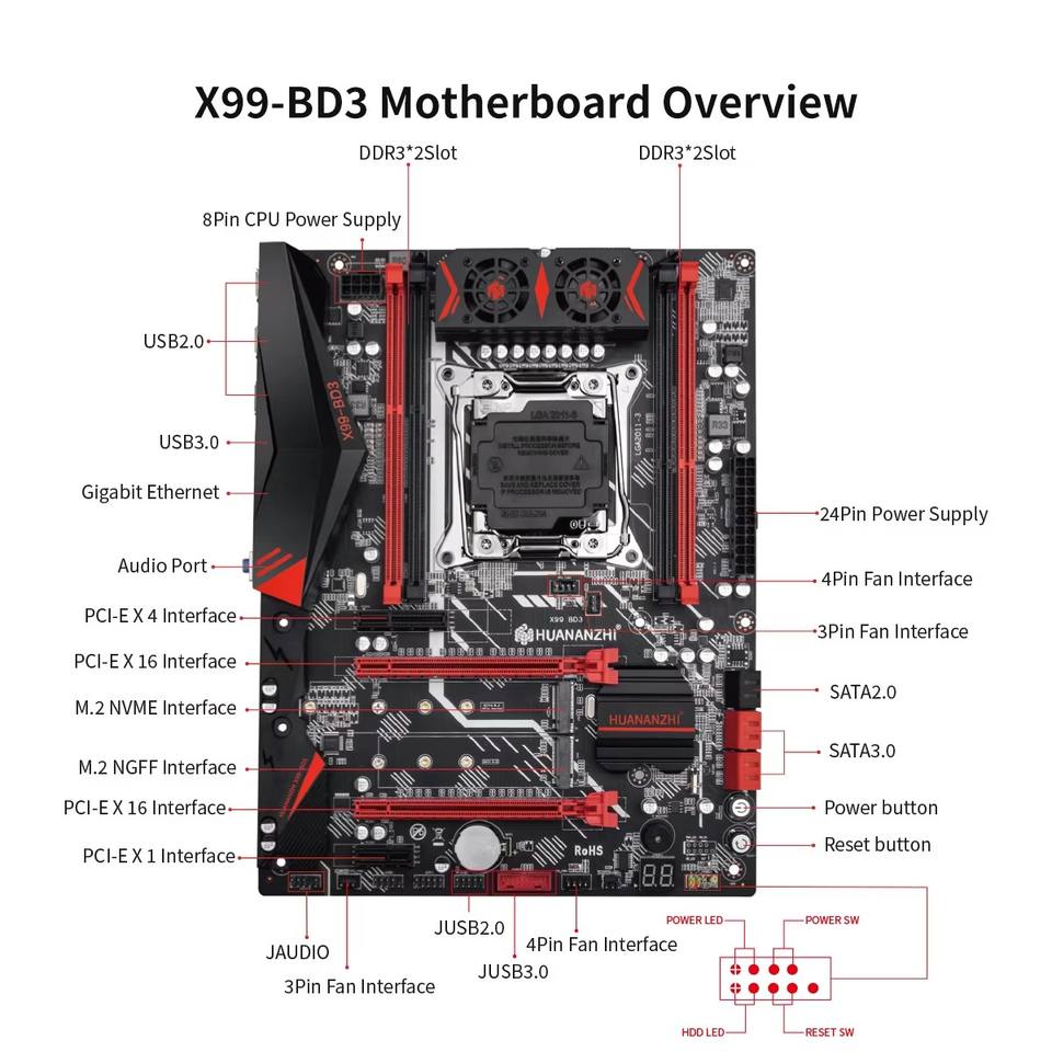 เมนบอร์ด X99-BD3 Huanzhi LGA 2011-3 Xeon x เมนบอร์ด2696 2678 2676 E5เมนบอร์ด DDR3สี่ช่อง3โรงงานขายส่ง
