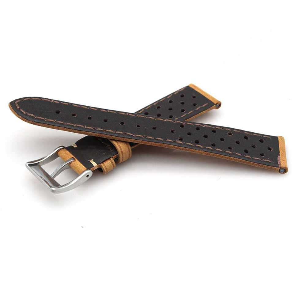 Huanlong นาฬิกาข้อมืออัจฉริยะลายม้าบ้าระบายอากาศ, ผลิตจากหนังแท้18มม. 20มม. 22มม. ปลดเร็ว