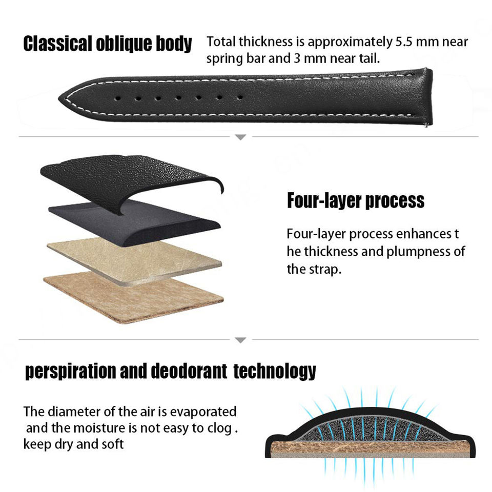 สายนาฬิกาหนังแท้ HUANLONG แบบนุ่ม ปรับได้ ผลิตตามแบบ ODM ตัดเย็บอย่างประณีต พร้อมระบบปลดเร็ว ขนาด 18 มม./20 มม./22 มม.
