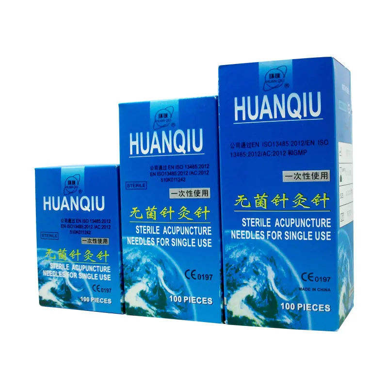 Huanqiu เข็มฝังเข็มแบบแห้งทำจากสเตนเลสฆ่าเชื้อแบบใช้แล้วทิ้ง100ชิ้นเข็มหนึ่งหลอดสำหรับผู้เริ่มต้นร่างกาย