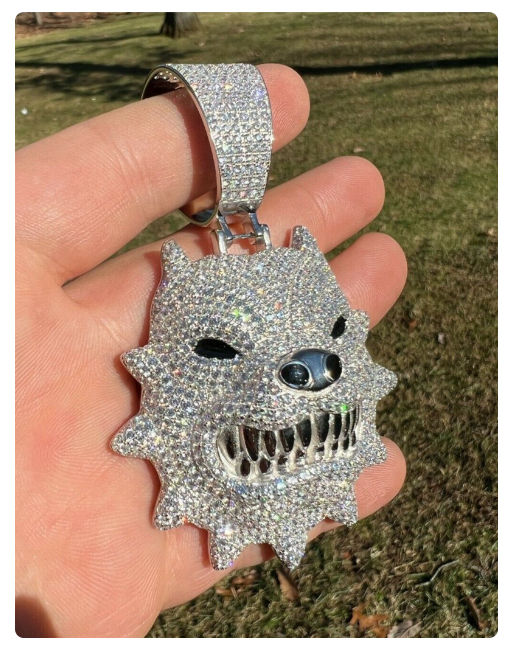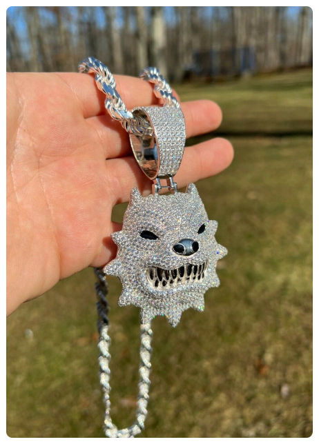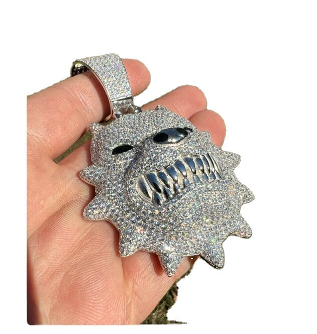 จี้พิทบูลแบบฮิปฮอปโกรธ3.5ขนาดใหญ่ทำจากเพชร925แท้สีเงินแท้พร้อมใช้งานจากอินเดีย