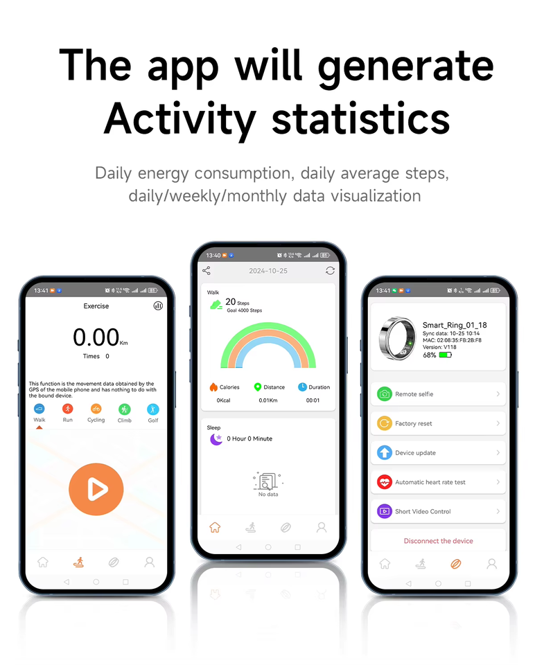 Huin แหวนอัจฉริยะสำหรับดูแลสุขภาพอัตราการเต้นของหัวใจมี GPS หลายตัวติดตามการออกกำลังกายฟิตเนสแอปอัจฉริยะ