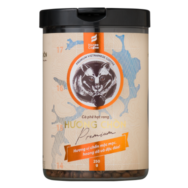 HUONG CHON Premium 250G Box of Light Coffee Weasel Flavor Roasted High-Aroma Quality Viet Nam Arabica Beans in Giftbox