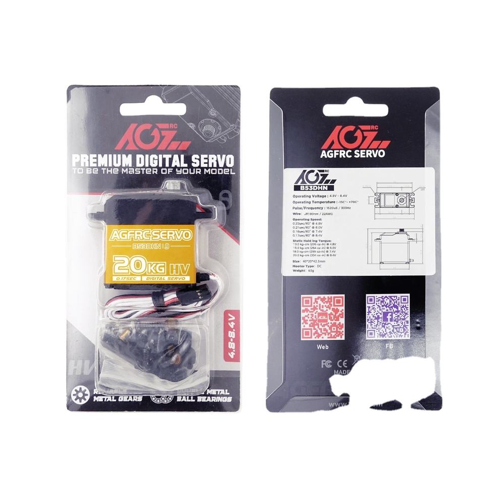 มอเตอร์ดิจิตอลแบบตั้งโปรแกรมได้ HV B53DHN 20 กก. 0.17 วินาที ความเร็วสูง เกียร์โลหะ 2S มาตรฐาน สำหรับอะไหล่เครื่องบินบังคับวิทยุขนาด 1/10