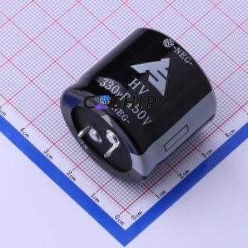 ตัวเก็บประจุแบบอิเล็กโทรไลต์อะลูมิเนียมแบบ Snap-in รุ่น HVE331M35030JVA ชนิด Through hole (THT) ขนาด D35xL30 มม. 330uF 20% 450V 10 มม.