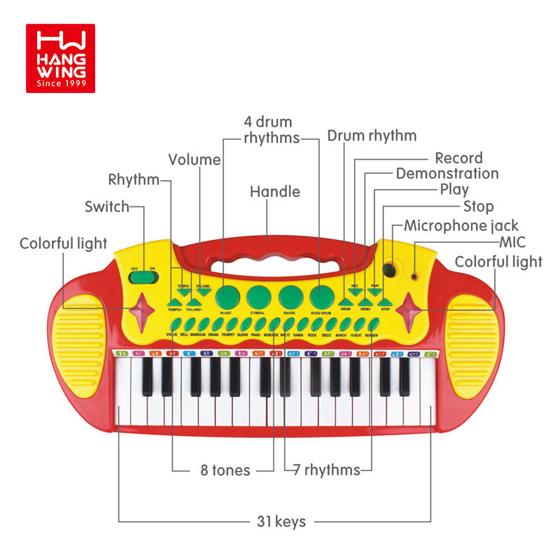 เครื่องดนตรีไฟฟ้าอเนกประสงค์ HW TOYS 31 คีย์ พร้อมไมโครโฟน ชุดเปียโนสำหรับเด็ก เด็กผู้หญิง เครื่องดนตรี ศูนย์ดนตรีเมโลดี้