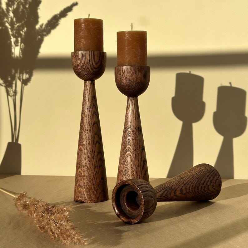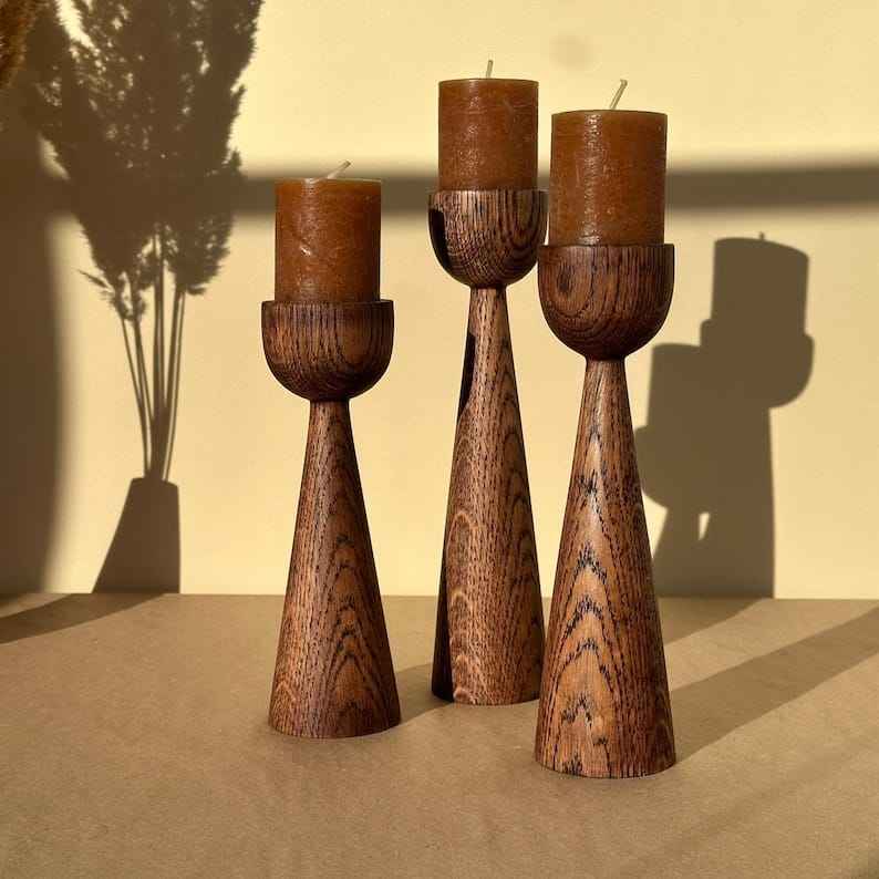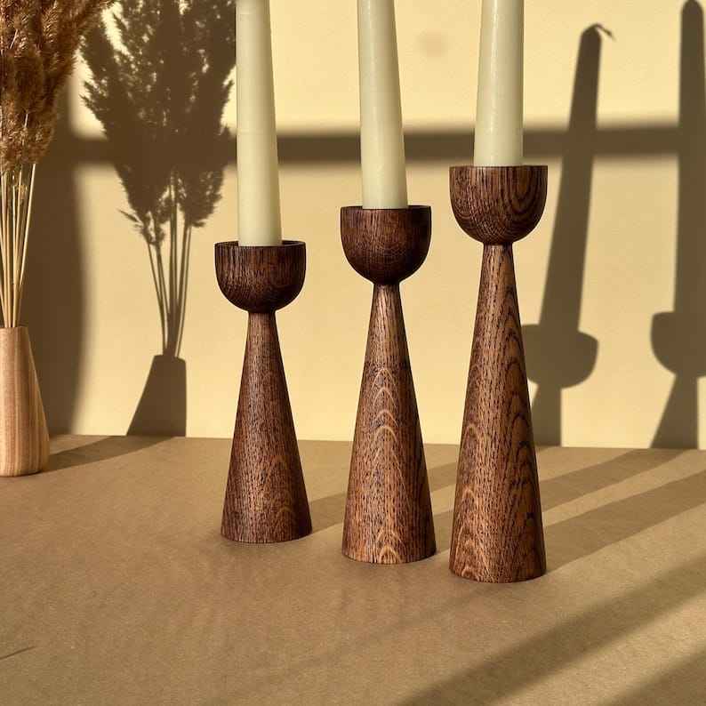 เชิงเทียนไม้ตกแต่งเทศกาล HWC พร้อมโคมไฟและที่วางขวดโหล