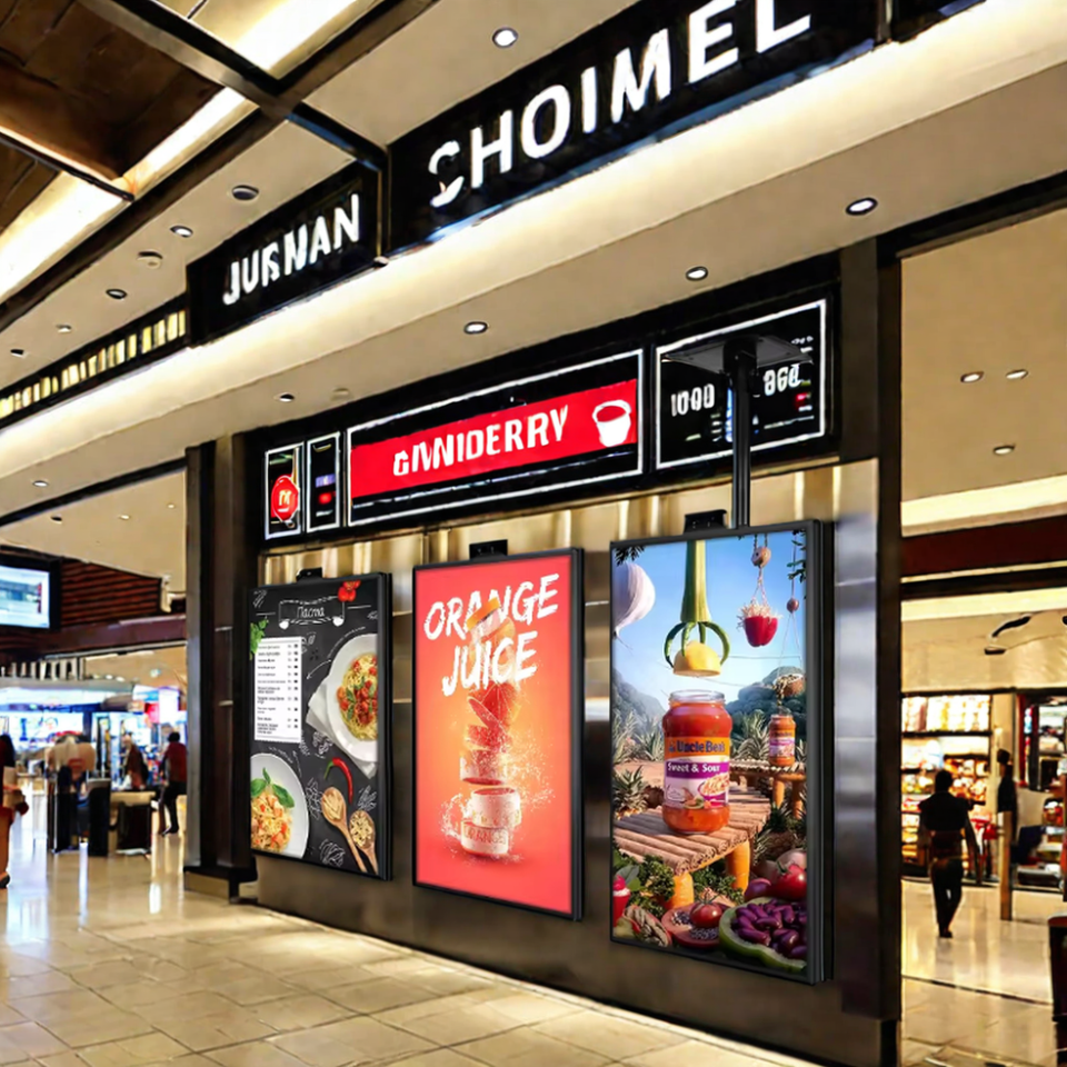 Hxxk จอแสดงผลแบบสองด้านจอแอลซีดีตู้แขวนแนวตั้งติดเพดานป้ายดิจิตอลสำหรับใช้ในลิฟต์หน้าต่างร้านค้าปลีกและร้านค้า