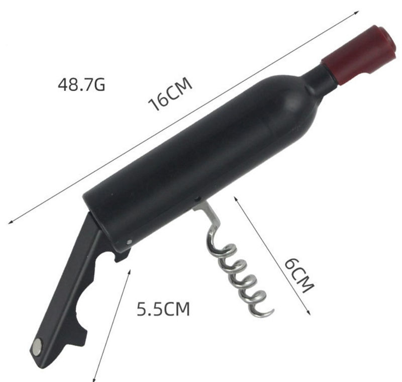 ที่เปิดขวดไวน์แบบพกพา HXY Custom Kitchen พร้อมแม่เหล็ก วัสดุพลาสติกและเหล็ก ดีไซน์รูปทรงขวดไวน์ สีดำ ด้ามจับ ABS เป็นมิตรกับสิ่งแวดล้อม