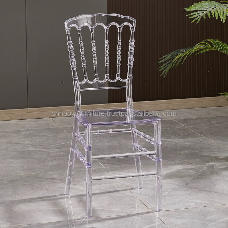 เก้าอี้ผีอะคริลิคใสด้านหลังเป็นคริสตัลใสเฟอร์นิเจอร์โรงแรมสำหรับงานเลี้ยงกลางแจ้ง