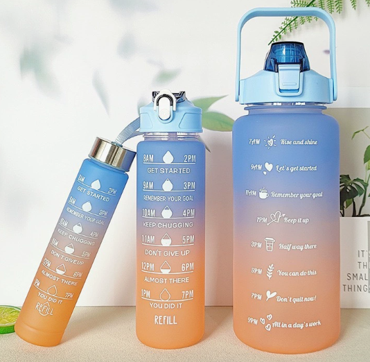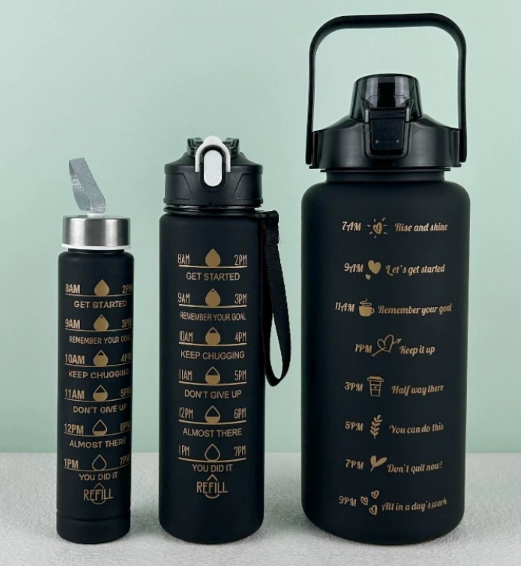 ชุดขวดน้ำ HYRI พร้อมโลโก้ไล่สี คุณภาพสูง ผลิตจากพลาสติก PC ความจุขนาดใหญ่ ใช้ซ้ำได้ ชุดขวดน้ำกีฬา 3 in 1