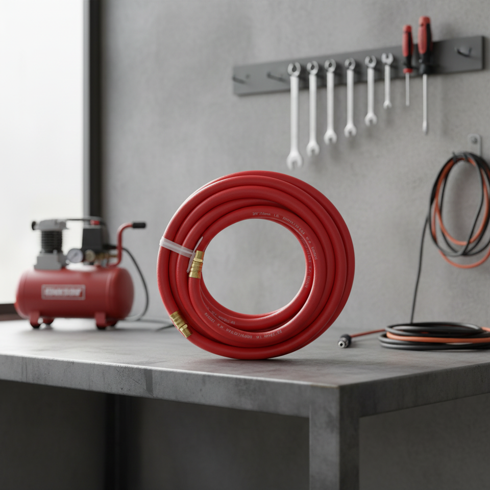 สายยางลม HYROTEFLEX มาตรฐาน SAE ขนาด 3/8 นิ้ว แบบถักเสริมแรง ขนาดเส้นผ่านศูนย์กลางภายนอก 10 มม. อุณหภูมิใช้งาน -35~+80 องศาเซลเซียส