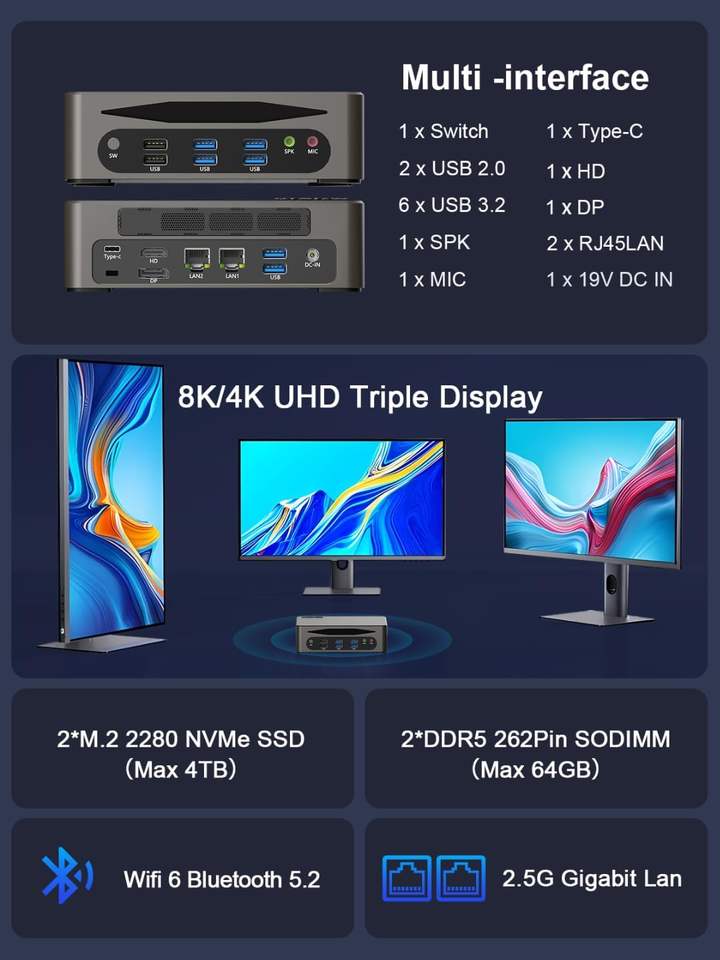 Hystou แรม I7มินิพีซี32GB DDR5 512GB NVMe SSD Win 11 Pro เกมมินิเซิร์ฟเวอร์สำหรับบ้านธุรกิจสถานะอุตสาหกรรมปลั๊ก au/us/eu