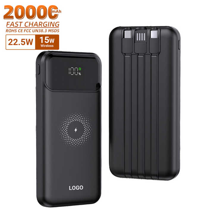 แบตเตอรี่สำรอง hyto 20000 mAh จอแสดงผล LED ที่ชาร์จไร้สายพร้อมสาย20000 mAh ชาร์จเร็วแบตเตอรี่โทรศัพท์มือถือแม่เหล็ก