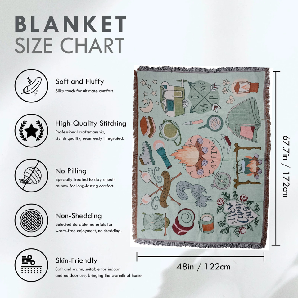 ผ้าห่มพกพา HYUGA ทำจากใยฝ้ายผสมโพลีเอสเตอร์ สไตล์โบฮีเมียน ใช้ได้ทุกเพศทุกวัย เหมาะสำหรับกิจกรรมกลางแจ้ง ปิกนิก ตั้งแคมป์ และการเดินทาง