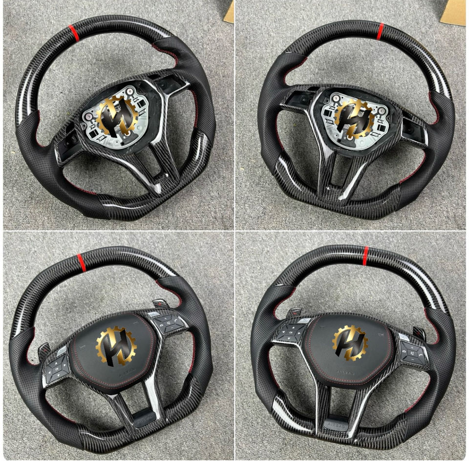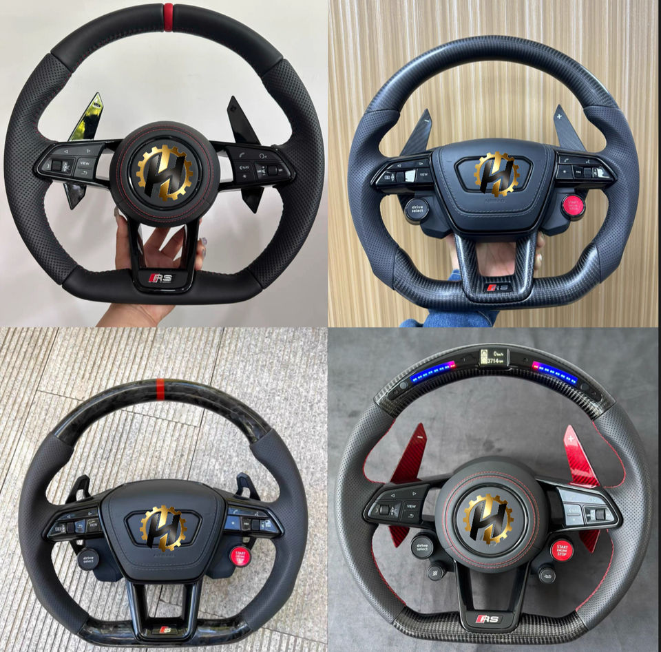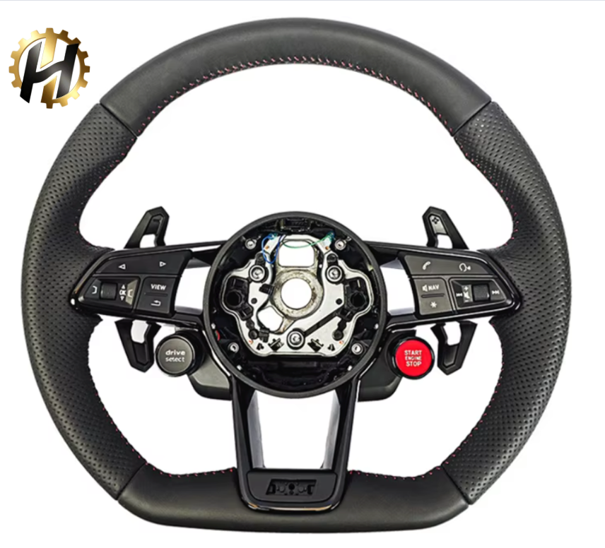 พวงมาลัยหุ้มหนัง HZ แบบ 3 ก้าน ขนาด 35 มม. พร้อมไฟ LED สำหรับรถยนต์ Audi R8 TT Mk2/Mk3 รุ่น RS และ A3-A8 Q3-Q7