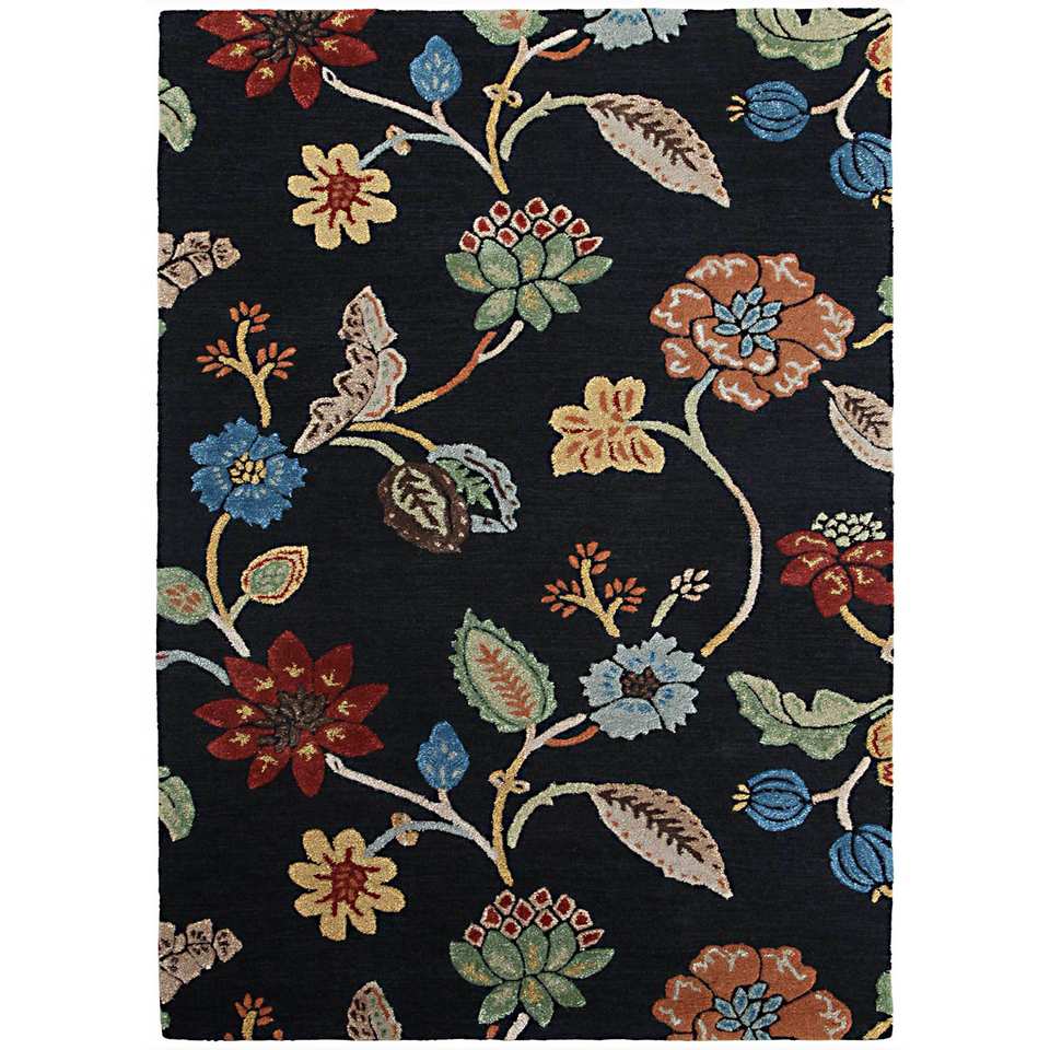 พรมขนสัตว์และใยวิสโคสทอมือลายดอกไม้สีเทาและดำ สำหรับตกแต่งบ้าน พรมรูปทรงสี่เหลี่ยมผืนผ้าสำหรับห้องนั่งเล่น-Taq-104