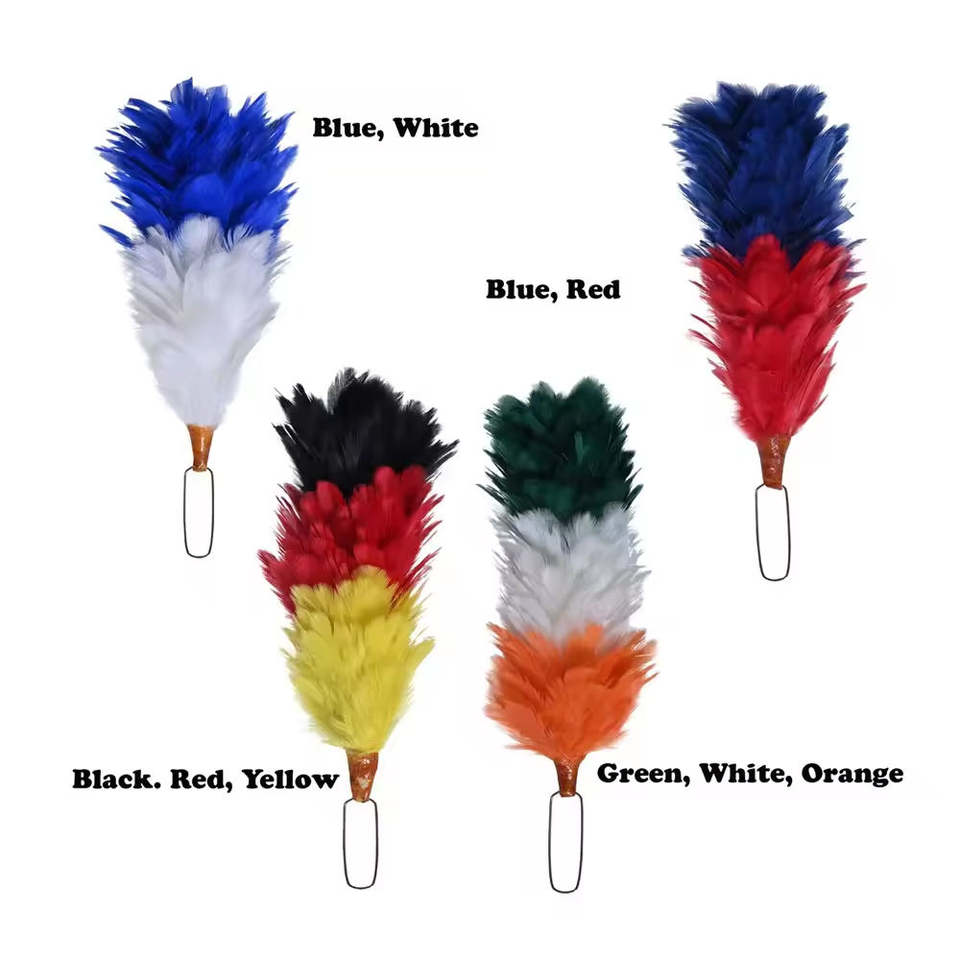 ขนนกฮัคเคิล เกลนแกร์รี่ และบาลโมราล สีเหลือง น้ำเงิน และแดง ขนนกฮัคเคิลพลัมส์ ขนนกสก็อตแลนด์ โรงงานผลิตขนนกฮัคเคิลโดยตรง