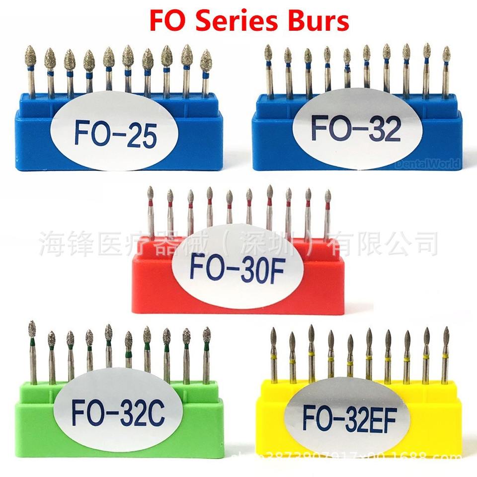 ดอกสว่านเพชรไฮเฟิง รุ่น Fo ซีรีส์ 10 ชิ้น บรรจุกล่อง ขนาดก้าน 1/8 นิ้ว สำหรับใช้กับเครื่องกรอฟันความเร็วสูง