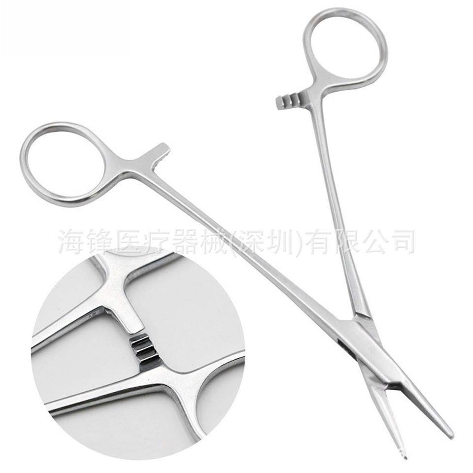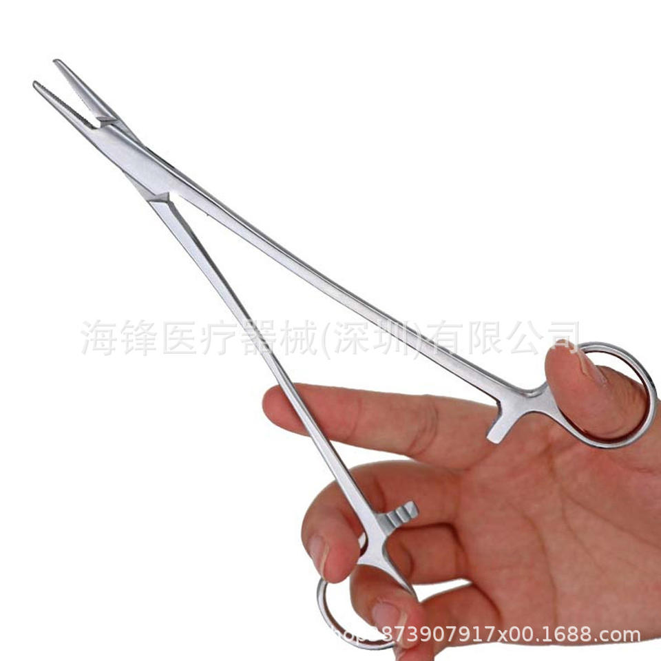ที่จับเข็มห้ามเลือด Hai Feng ขนาด 12.5 14 16 18 ซม. ปลายตรงและโค้ง อุปกรณ์ผ่าตัดสำหรับฝึกหัด