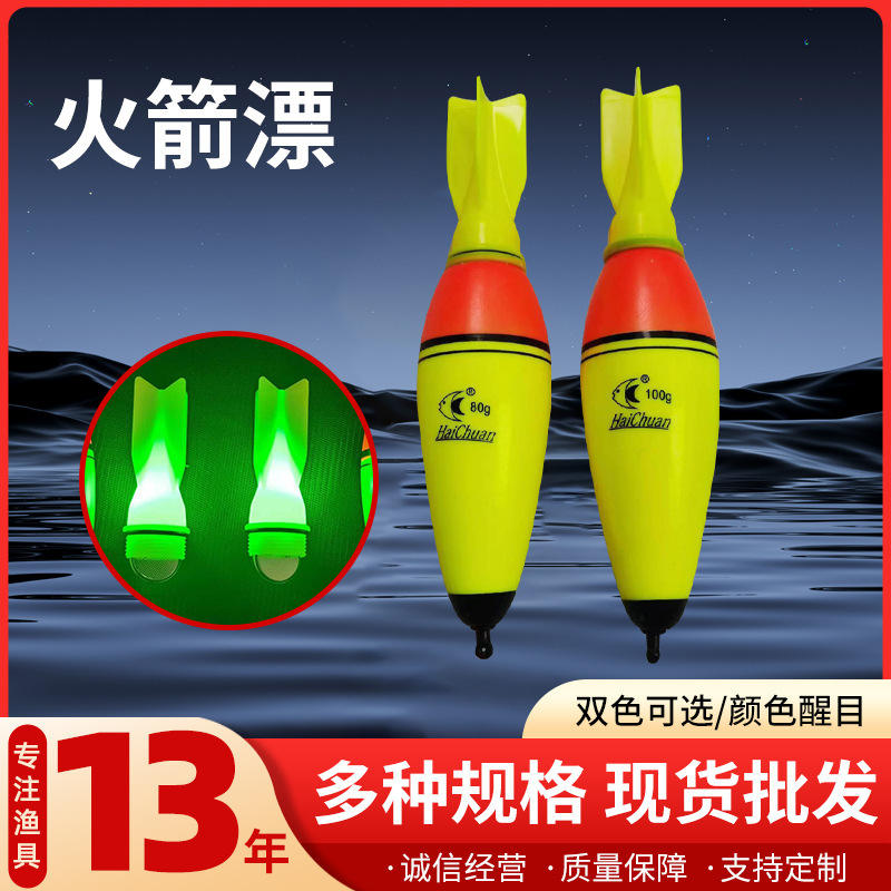 ทุ่นตกปลา HaiChuan รุ่น T-Profile น้ำหนัก 80 กรัม เรืองแสงในที่มืด สำหรับตกปลาชายฝั่งทะเล แบบลอยตัวแนวตั้ง ทำจากพลาสติก รูปทรงจรวด